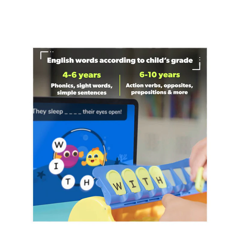 Word Wiz is an AR-powered word building kit that combines the goodness of hands-on learning and healthy screen-time. Spell with alphabet tiles, grow your vocabulary, and improve grammar with story-based games. Watch the video to catch it in action STEM, STEAM & everything in between - sharpen your linguistic, reading, comprehension, cognitive, and motor skills. Learn spellings through phonics (ABCs), word usage in sentences, grammar, and language concepts like nouns, verbs, tenses, etc AGES 4-10 - Plugo app has 5 interactive games and 250+ levels that make learning super fun (no in-app purchases). More importantly, the app adapts these games to the childĂą??s grade from pre-K to 4 for a progressive educational journey This Device is Compatible with 1. iOS - iPad 5th gen or newer, all models of iPad Pro (except Pro 12.9"), all models of iPad Air, iPad Mini 2nd gen or newer, iPhone 6 or newer. 2. Android devices: 2015 and newer, 2GB RAM and above| Amazon - Fire 7 (9th gen 2019 release only), Fire 8 (8th gen 2018 release, 10th gen 2020 release);Please refer the last image for further information on compatible devices. IN THE BOX - The kit contains a Foldable Gamepad, Letters Trunk and 48 letter tiles. Spell with tiles on the Trunk, and put them all inside to store away. It comes with the Plugo gamepad, a foldable mat with embedded magnets to hold the Plugo kit on one side, and your device goes in the slot on the other side. Hands-on learning without touching the screen! SNI: 2-136-133-25000861-1